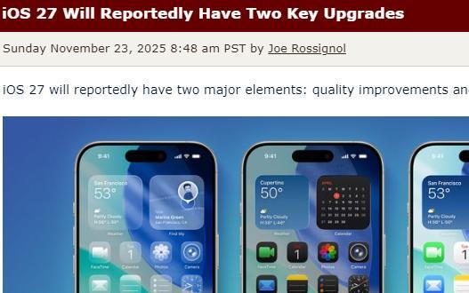 来源:环球网 【环球网科技综合报道】11月24日消息,彭博社资深记者马克・古尔曼日前通过 "Power On" 时事通讯 披露了iOS 27的核心研发方向:该系统将主打质量优化与AI功能升级,对标经典的Mac OS X Snow Leopard系统,以 "重质不重量" 为核心思路。 古尔曼表示,iOS 27不会盲目堆砌新功能,而是将重点放在底层性能打磨与使用体验优化上,这一理念 与当年Mac OS X Snow Leopard "无新功能却成经典" 的研发逻辑高度一致。不过例外的是,iOS 27将强 化AI技术的落地应用,计划把人工智能拓展至更多苹果原生应用中,提升交互的智能化水平。 此外,古尔曼还重申了Apple Health +订阅服务的新动态,该服务将为用户提供个性化健康建议,进一 步丰富苹果生态的健康管理场景。值得一提的是,这种"重质量优化"的思路并非iOS独有,macOS 27也 将遵循相同的研发策略。(旺旺) ...