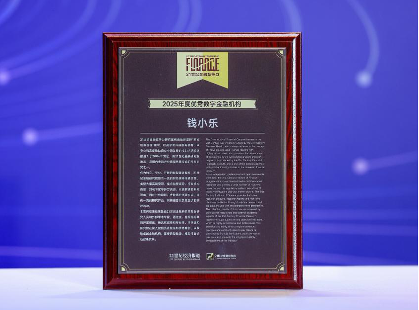 双轮驱动破局新质金融 钱小乐入选2025年度优秀数字金融机构