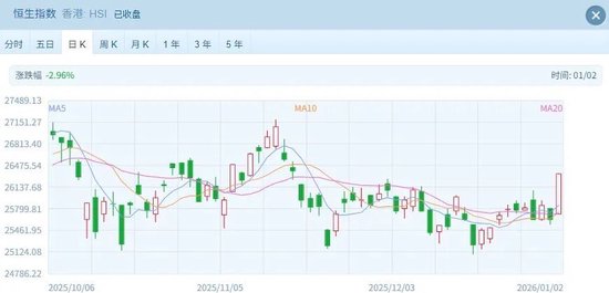来源:港股第一眼 今日(2026年1月2日),港股市场迎来近13年最强开局。 截至收盘,恒生指数大涨707.93点,以26338.47点报收,涨幅2.76%,创下2013年以来最强开局表现。 2013年1月2日,当时恒指单日大涨2.89%。 此外,恒生科技指数表现更强,截至收盘,恒生科技指数报收于5736.44点,上涨220.46点,涨幅达 4%。 从行业来看,各类行业全线飘红,半导体、国防军工、软件服务、家电领涨。 | | | Wind香港二级行业指数 | | | | --- | --- | --- | --- | --- | | 未曾体 | 国防军工 | 软件服务 | 家电II | 钢铁Ⅱ | | 7.87% | 7.78% | 4.18% | 3.99% | 3.59% | | 可选消费零售 | 有色金属 | 非银金融 | 耐用消费品 | 硬件设备 | | 3.53% | 3.34% | 2.81% | 2.65% | 2.58% | | 建筑 | 交通运输 | 在亚服务 | 环保II | 房地产投资信托 | | 1.12% | 0.80% | 0.78% | 0.74% | 0.66% | | 纺织服 ...