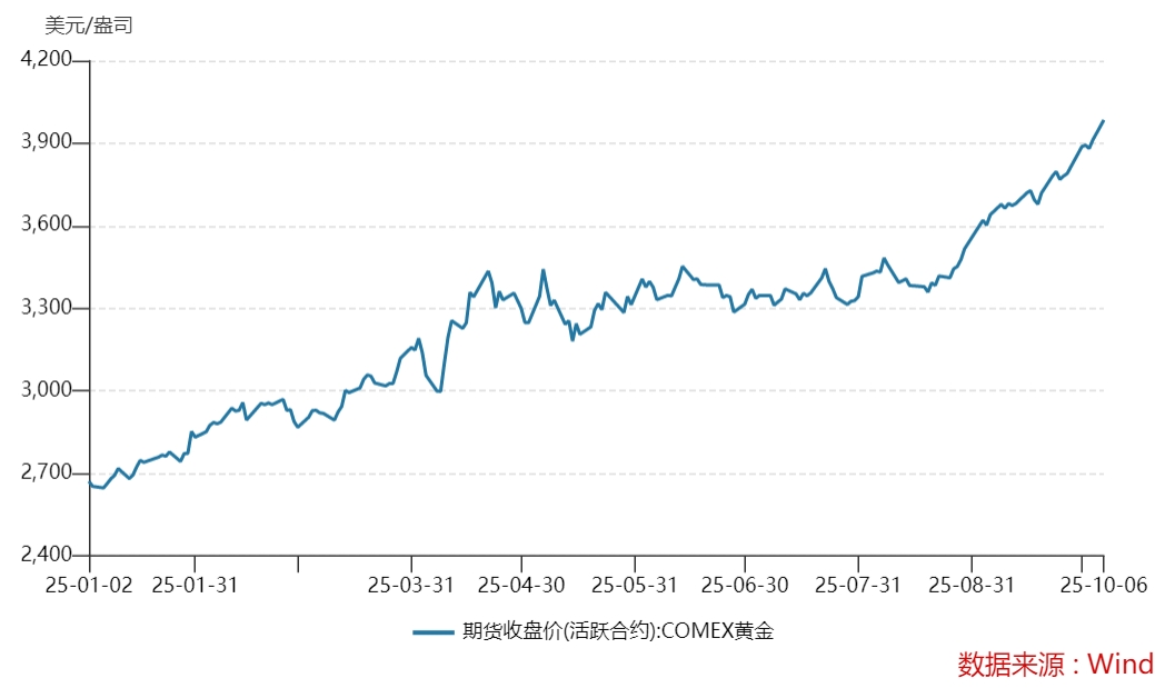 黄金期货首次触及4000美元大关 年内大涨逾50%