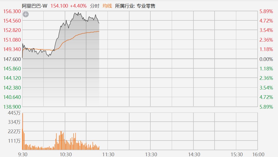 阿里拉升涨近6%,明日揭晓业绩+千问APP公测第一周下载破千万