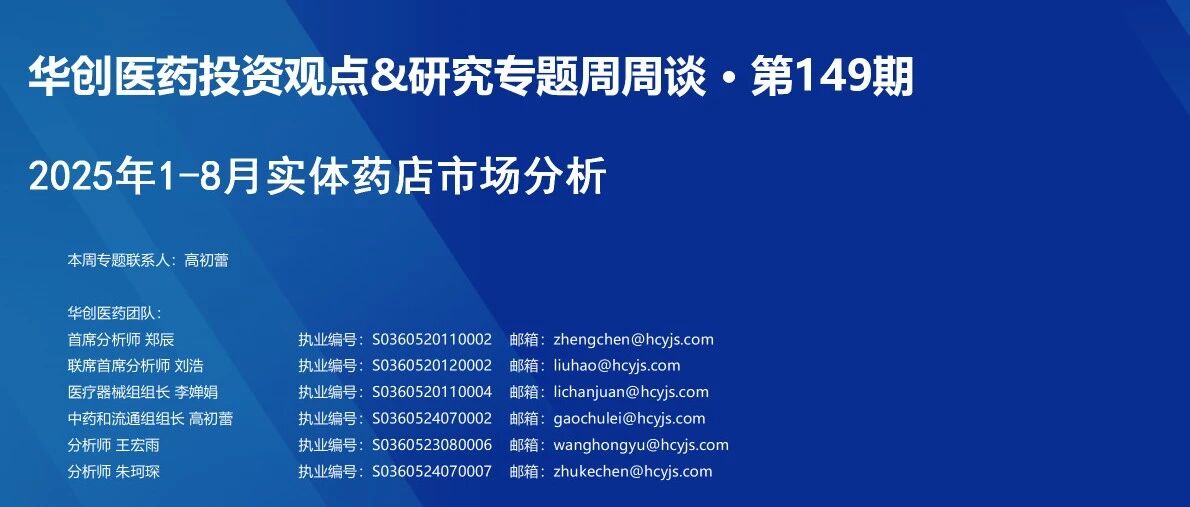 华创医药周观点:2025年1-8月实体药店市场分析 2025/11/8