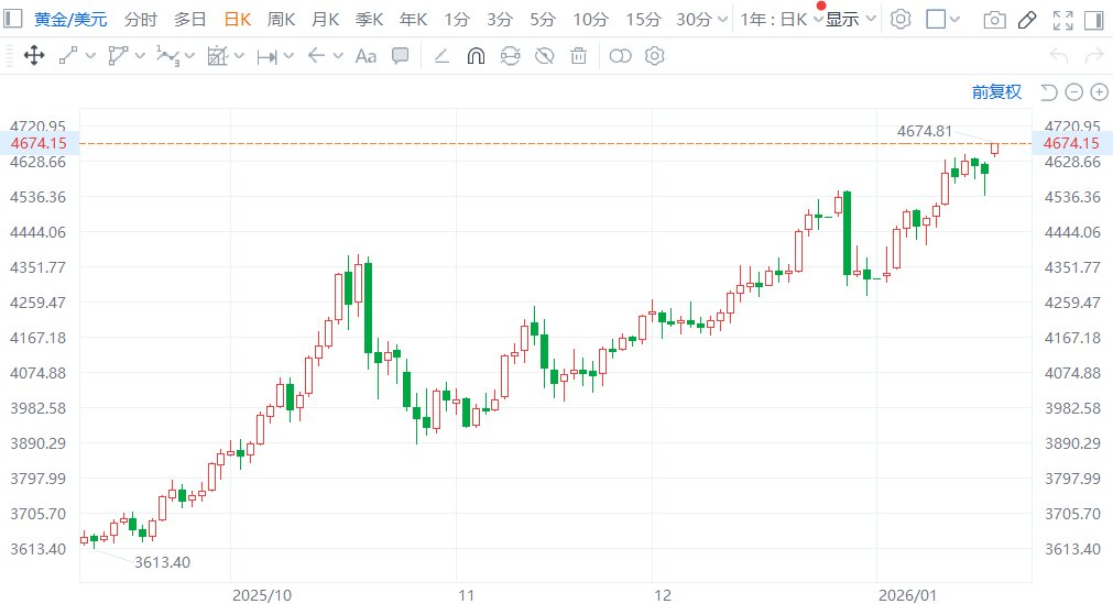 现货黄金突破4670美元