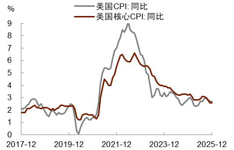 Core Viewpoint - The December 2025 US CPI shows a year-on-year increase of 2.7%, consistent with previous values and expectations, while the month-on-month increase is 0.3%, higher than the previous 0.1% and in line with expectations. The core CPI year-on-year increase is 2.6%, matching the previous value but lower than the expected 2.7% [1][5][15] Summary by Sections Inflation Data - The overall CPI year-on-year increase is 2.7%, with a month-on-month increase of 0.3%, driven by rebounds in food and service prices. The core CPI year-on-year increase is 2.6%, with a month-on-month increase of 0.2%, higher than the previous 0.1% but lower than the expected 0.3% [1][5][15] Core Goods and Services - Core goods prices remained flat, with a year-on-year increase of 1.4% and a month-on-month change of 0%. Notably, used car prices fell significantly by -1.1% month-on-month, which is much lower than the average of 0.5% in October and November, impacting the core CPI by approximately 3 basis points [11][12] - Core service prices rebounded, with a month-on-month increase of 0.3%, up from an average of 0.1% in October and November, and a year-on-year increase of 3%. Rent was a major contributor, with both OER and primary residence rent increasing by 0.3% month-on-month [2][12][13] Market Reactions - Following the data release, expectations for interest rate cuts remained largely unchanged. The probability of no rate cuts in January, March, and April is high, while the probability of a cut in June is 48.1%, slightly up from 46.2% [3][17] - The US dollar index continued to appreciate slightly, reaching 99.18, while US stock markets saw declines, with the Dow down 0.8% and the S&P 500 down 0.19% [3][17][18] Federal Reserve and Policy Outlook - The divergence between the White House and the Federal Reserve regarding interest rate policy is a key market focus. The ongoing criminal investigation into Fed Chair Powell regarding potential perjury related to the Fed's renovation project raises questions about the independence of monetary policy [4][19]