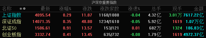 沪指涨0.29%逼近4100点,两市半日成交1.84万亿
