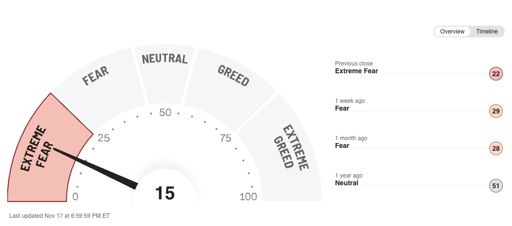波动性已明确回归美国科技股市场,纳斯达克100指数 (Nasdaq 100) 在过去一周经历了剧烈震荡,市场情绪从周初的乐观迅速转向了本周伊始的深度谨慎。 这指数相比之前一周和一个月,恐慌指数已从"恐慌"级别急剧升至"极度恐慌"的区间。这一显著的跳升清晰地反映了全球金融市场投资者对当前复杂且多变 局势的高度不安与迷茫。 这种"极度恐慌"的信号,显示出市场参与者正在经历剧烈的情绪波动,并且对未来资产价格的走势缺乏明确的预期,导致避险情绪空前高涨。恐慌指数的飙 升通常伴随着股票市场的剧烈抛售、资产相关性趋同以及对安全资产(如国债、黄金)的需求激增。 这指数不仅衡量了市场的波动性,更深层次地揭示了投资者对系统性风险或重大不确定性事件爆发的担忧程度,表明市场正在为潜在的更大动荡做准备。 这种现象,即卖盘压力范围超出买盘动力,通常被市场分析师视为科技板块整体疲弱或缺乏信心的信号。纳斯达克综合指数以科技和成长类个股为主,对市 场情绪与未来盈利及经济增长预期极为敏感。 具体来看,更多成分股创一年新低而非新高,显示市场空头情绪已蔓延,并非局限于少数股票。这一内部指标透露出的信息比指数点位本身更细致,因为整 体指数可能仍被少数 ...