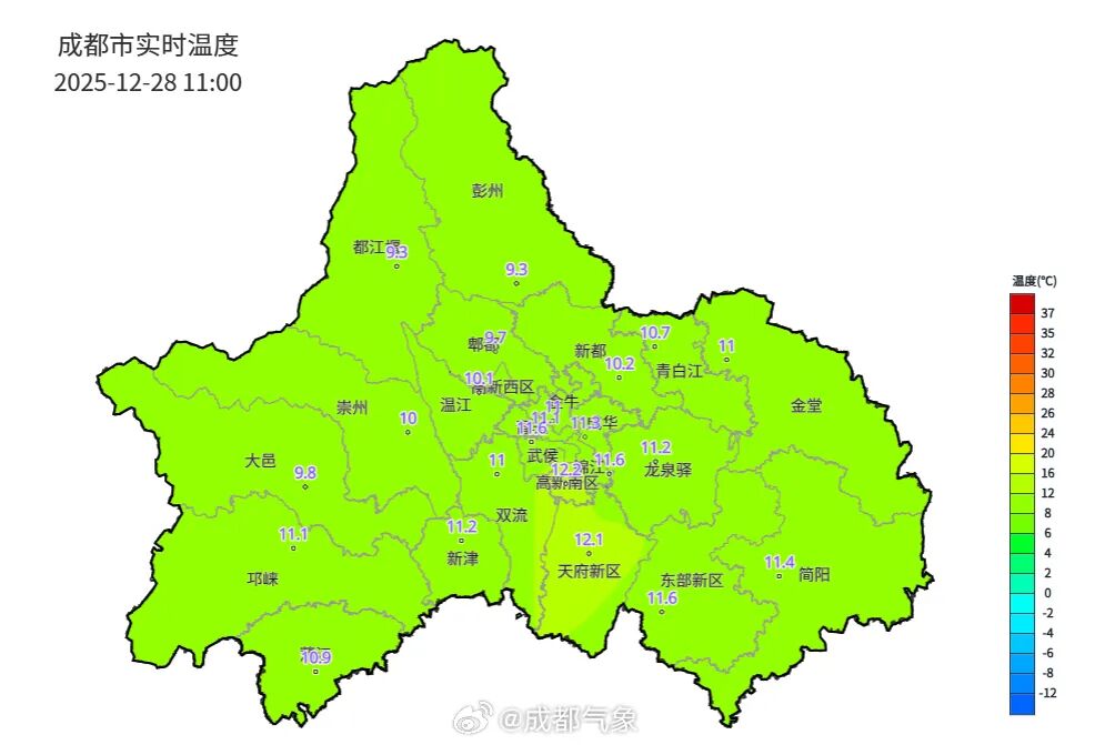 转自:成都发布 今日早间我市以云层为主 部分地区出现大雾天气 11时全市平均气温为10.8℃ 午后以多云间阴天气为主 太阳娇羞露脸营业 日最高气温在14℃上下 夜间云层增多 有分散小雨 2025最后一个周末 阳光营业中 今天是2025最后一个周末 成都的天气以多云间阴为主 阳光上线打卡 预计未来几天 我市以阴天间多云天气为主 一周天气预报 我国大部气温继续回升 今起两股冷空气接连来袭 今天,我国大部气温继续回升,黄淮南部及以南大部地区最高气温将回升到15℃以上。不过,今天开始至元旦假期,将有两股冷空气接连影响我国,各地 气温波动下降,公众请及时调整着装。同时,今明天,我国大部维持雨雪稀少的天气格局,后天起降水发展增多。 由于白天最高气温回升更快,中东部大部昼夜温差将普遍超过10℃,部分地区可达15℃以上。像武汉今天最高气温可达17℃,但最低气温只有2℃,大家 请适时调整着装。 不过今天开始,冷空气也逐渐影响我国。中央气象台预计,28日至30日,将有冷空气影响北方部分地区,内蒙古、华北北部、东北地区等地气温下降4至 6℃,其中内蒙古中东部、东北地区部分地区降温8至10℃,局地10℃以上。 2025年12月30日 ...