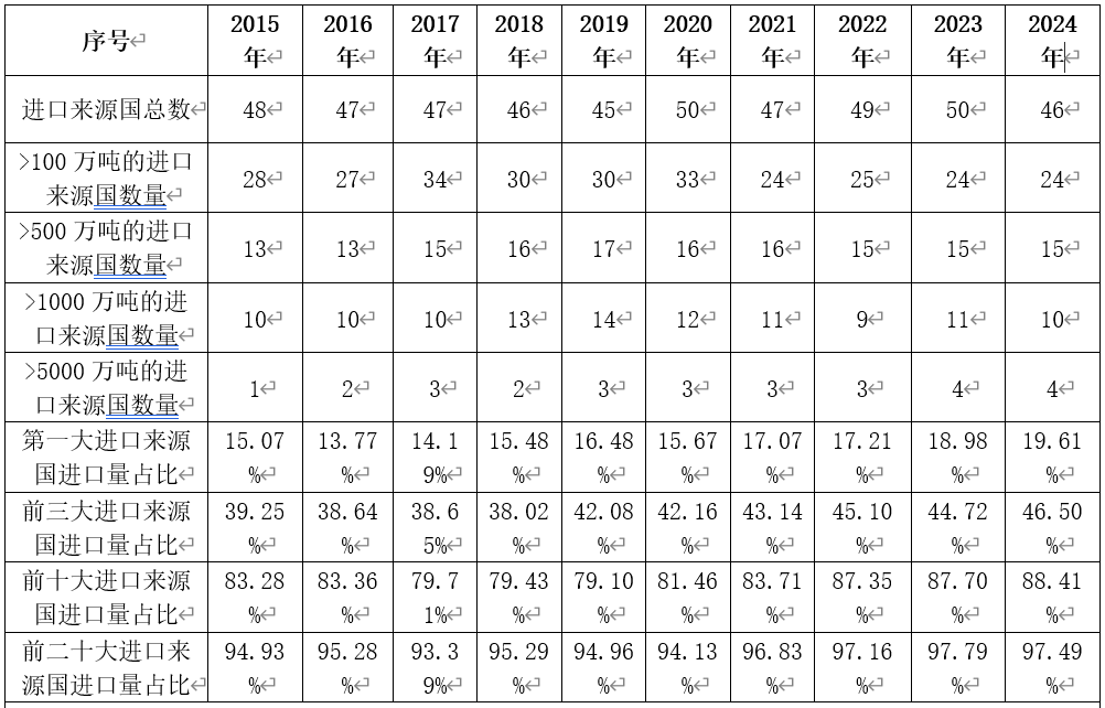 Core Viewpoint - The article discusses the significant role of crude oil in China's economy, highlighting the country's high dependence on oil imports and analyzing the trends and sources of crude oil imports over the past decade [1][2]. Group 1: Crude Oil Import Trends - From 2015 to 2024, China's annual crude oil import volume is projected to increase from approximately 336 million tons in 2015 to 553 million tons in 2024, representing a 1.65 times increase [2]. - The import volume is expected to exceed the historical peak of 564 million tons in 2023, with a year-on-year increase of about 3% in the first nine months of 2025 [2]. - The acceleration in import volume growth is attributed to rapid industrialization and urbanization, alongside the reform of the crude oil import quota system post-2015 [2]. Group 2: Characteristics of Import Sources - The number of countries supplying crude oil to China has remained above 45, indicating a diversification in import sources [3]. - The median share of oil supplied by individual countries ranges from 0.15% to 0.50% of total imports, enhancing energy supply security [3]. - The concentration of imports has increased, with the top ten source countries' share rising from 83.28% in 2015 to 88.41% in 2024 [9]. Group 3: Major Import Sources - The top ten crude oil suppliers to China include Saudi Arabia, Russia, Angola, Iraq, Oman, Kuwait, and Brazil, with Malaysia emerging as a significant supplier by 2024 [6][11]. - The import volume from Malaysia surged from 270,000 tons in 2015 to over 70 million tons in 2024, marking a 260-fold increase [11]. - Russia has become the largest supplier, with imports increasing by 24% in 2023, reaching 107 million tons, and is expected to maintain a significant share in the coming years [10][11]. Group 4: Future Outlook - The future import landscape is expected to be stable yet dynamic, with countries like Saudi Arabia and Oman maintaining steady export levels due to their stable geopolitical situations [16]. - The geopolitical tensions affecting countries like Russia, Iran, and Venezuela may lead to fluctuations in their export volumes to China, while countries like Brazil and Canada are likely to see increased exports due to rising production [17][18]. - China's energy strategy emphasizes the need for continued diversification of import sources to mitigate risks associated with geopolitical events [20].