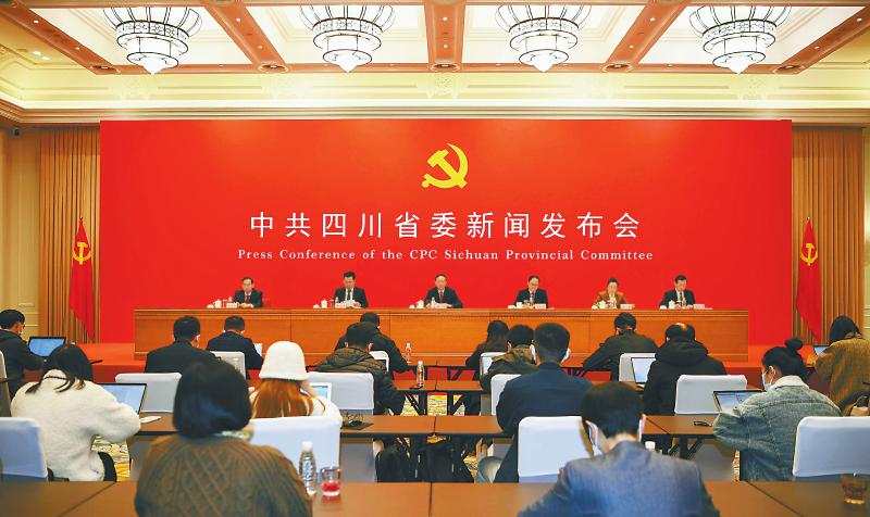 12月3日,中共四川省委新闻发布会在成都举行。记者 杨树 摄 发布人 王一宏 省委秘书长、省委新闻发言人 唐文金 省委副秘书长、省委政研室主任 张道平 省委副秘书长 郑备 省发展改革委主任 高中伟 省委宣传部副部长 主持人 傅思泉 省委宣传部常务副部长 四个特点 一是体现了坚强的政治定力 二是体现了科学的系统谋划 三是体现了鲜明的四川特色 4 全会审议通过《关于召开中国共产党四川省第十二次代表大会的决议》,明确了省第十二次党代会的主题 主线和重大任务,对于在新的历史起点上绘就四川未来发展蓝图具有重要意义 5 省委对深入学习贯彻六中全会精神、认真落实省委全会决策部署提出重要要求,有利于引导全省广大党员 干部从党的奋斗历程中汲取智慧和力量,以更加奋发有为的精神状态迈步新征程、建功新时代 12月1日至2日,省委十一届十次全会在成都举行。这次全会是在全省上下隆重庆祝中国共产党成立100周年、 深入学习贯彻党的十九届六中全会精神、党史学习教育取得显著成果的新形势下,在我省步入全面小康社会、"十 四五"实现良好开局、向着全面建设社会主义现代化四川迈进的重要时刻召开的一次十分重要的会议。 社会各界普遍关注,这次为期两天、议 ...
