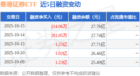 香港证券ETF:10月15日融资净买入214.06万元,连续3日累计净买入1.3亿元