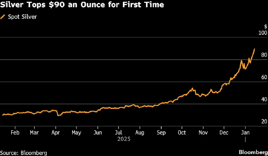 受针对美联储的抨击、美国或进一步降息的预期,贵金属涨势延续!白银价格突破90美元关口再创历史新高