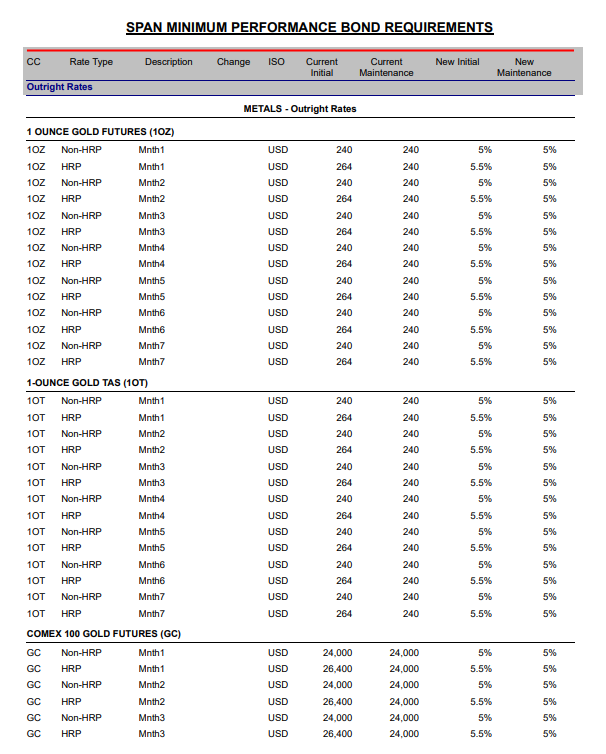 昨日白银、黄金纷纷创下新高,面对贵金属市场的剧烈波动,芝商所正在改变游戏规则,将贵金属保证 金收取方式从"固定"改为"浮动"! 根据芝商所1月12日发布的通知,根据对市场波动性的正常审查,为确保充足的抵押品覆盖,将改变黄 金、白银、铂、钯合约的保证金设定方式,由此前的按照固定金额收取保证金,改为按照合约名义价值 的一定比例计算保证金。相关费率将从1月13日收盘后生效。 部分非高风险组合黄金合约的保证金比例将调整为名义价值的约5%,白银约为9%。交易所表示,这一 决定基于对市场波动性的正常审查,旨在确保充足的抵押品覆盖。 | CC | Rate Type | Description | Change ISO | Current | Current | New Initial | New | | --- | --- | --- | --- | --- | --- | --- | --- | | | | | | Initial | Maintenance | | Maintenance | | Outright Rates | | | | | | | | | | | | METALS - Outright Rate ...