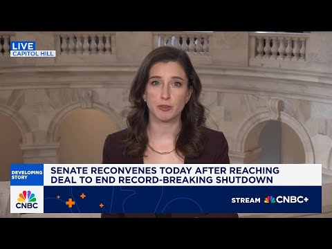 Let's begin in Washington and the progress over the weekend to reopen the government after this historic shutdown. Our Emily Wilkins joins us once again from Capitol Hill. Good morning, Emily. >> Good morning, Carl.Yes, last night, eight Senate Democrats voted with nearly all Republicans to advance a bill to reopen the government. And while the Senate still does need to take a few more votes, we are waiting to hear what kind of timing agreement they get for when that will be. Plus, the House needs to vote.W ...