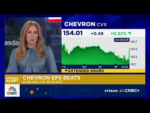 Chevron out with earnings this morning. Oil giant beating him on the top and bottom lines record production thanks in part to its acquisition of of HS. David, we talk about that, right.Yeah, Guyana. >> Um, and so joining us now in an exclusive CNBC interview is uh Chevron chairman and CEO Mike Worth. Mike, you know, we love having you on the show.How's things going there. >> Well, happy Halloween, Jim. And uh, look, we're we're we're doing it all.Uh, we had record production in the quarter. We had strong ca ...