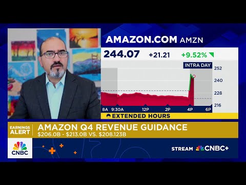 Let's get another check on Amazon. Those shares still surging up almost 9% after a beat on the top and bottom lines. Amazon Web Services, the cloud unit for Q3 revenue jumped 20%.Joining me now is Rohit Kalc Carney from Roth MKM. Roit uh $33 billion here in AWS revenue and um you know operating income for uh AWS looking pretty solid considering the layoffs that they're planning as well. Is this what the street is excited about here.>> Yeah, I think the the magic number is 20% year-on-year growth. uh that's ...