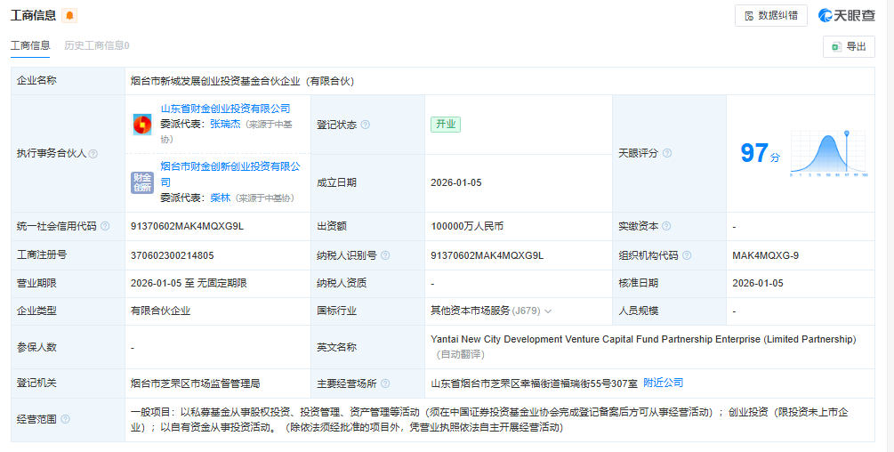 Core Viewpoint - The establishment of the Yantai New City Development Venture Capital Fund aims to enhance capital support for industrial development and accelerate the construction of the Jiahua·Happiness New City project [1][3]. Group 1: Fund Overview - The fund has a total scale of 2 billion RMB, with an initial phase of 1 billion RMB, of which 500 million RMB is specifically allocated for investments in the Jiahua·Happiness New City industrial projects [3]. - The fund is jointly initiated by Yantai Main City Holding Group Co., Ltd., Shandong Financial and Economic Venture Capital Co., Ltd., Shandong New Kinetic Energy Fund Management Co., Ltd., and Yantai Financial and Economic Innovation and Entrepreneurship Investment Co., Ltd. [3]. Group 2: Investment Focus - The fund will focus on supporting three main industries: digital economy, green economy, and service economy, as well as two characteristic industries: low-altitude economy and headquarters economy, along with various future industries [5]. - The investment scope will cover the entire lifecycle of enterprises, including startup, growth, and maturity stages, to meet the funding needs and development demands of quality enterprises at different stages [5].