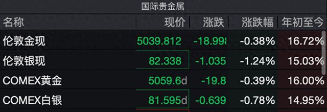来源:智通财经 现货黄金价格重回5000美元上方,现货白银价格重新站上80美元。 继2月9日亚市盘中突破5000美元后,当日现货黄金价格继续上涨,收盘交投于5060美元/盎司附近。不 过,2月10日开盘后现货黄金再度出现回调,一度跌破5000美元,截至发稿跌0.38%,报5039.812美元/ 盎司;现货白银同样在大幅震荡,2月9日一度大涨8%站上83美元,截至发稿报82.338美元/盎司,跌 1.24%。 | 国际贵金属 | | | | --- | --- | --- | | 名称 | 现价 涨跌 | 涨跌幅 年初至今 | | 伦敦金现 | 5039.812 -18.991 -0.38% 16.72% | | | 伦敦银现 | 82.338 -1.035 | -1.24% 15.03% | | COMEX黄金 | 5059.6d -19.8 | -0.39% 16.00% | | COMEX白银 | 81.595d -0.639 | -0.78% 14.95% | 消息面上,本周是美国重磅经济数据的窗口期,陆续会公布非农数据和CPI,市场预估美国即将发布疲 软的就业报告,从而提高美联储降息预期。美国白宫国家 ...