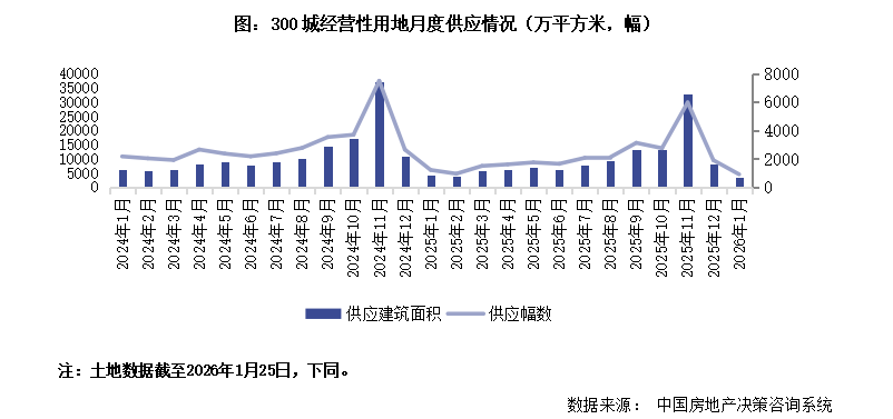 克而瑞地产研究:1月土地成交规模迎来季节性回落 供求规模环比显著下降