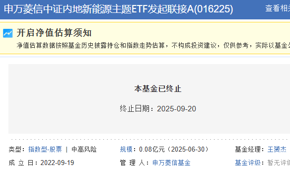 申万菱信中证内地新能源主题ETF联接清盘 3年亏损2成