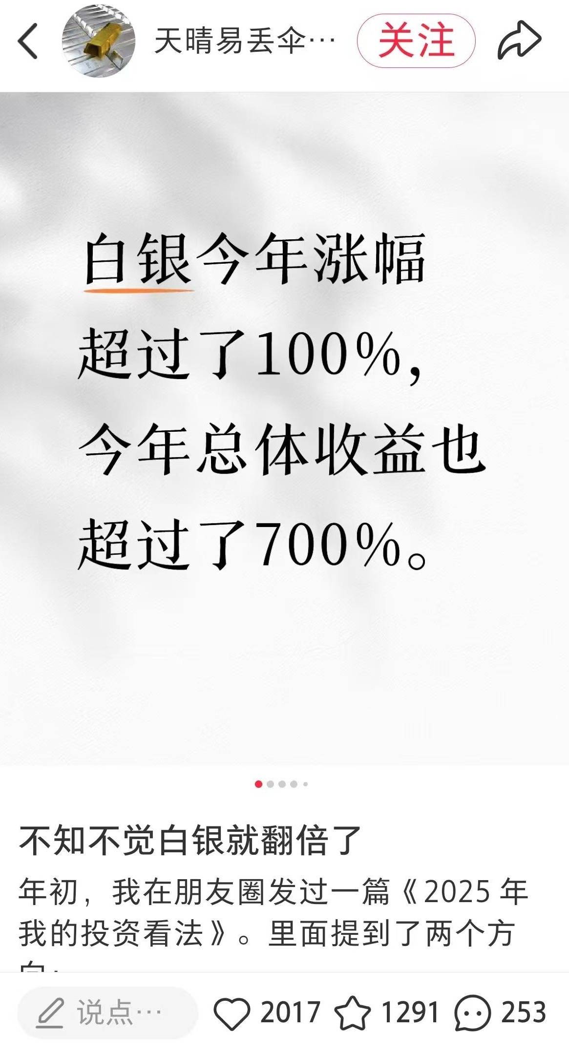 深圳商报·读创客户端记者 胡星访 文/图 2026 年1月14日,伦敦现货白银价格突破 90 美元 / 盎司,带动整个贵金属板块热度飙升,各类投资热梗在互联网上火速刷屏,引发网友热议。业内称白银 暴涨受地缘博弈、产业需求、国家战略等多重因素驱动。而白银剧烈的价格波动,也让机构频频发出理性投资、警惕高波动风险的警示。 现货白银1月14日实时价格 白银"飙涨"引发热议 "白银今年涨幅超过了100%,今年的总体收益也超过了700%"。近日,一位来自香港的投资客在小红书分享了投资白银,让200万元本金翻了数倍的帖子。 帖子引发众多网友跟帖热议。而网络上类似"卖房梭哈白银,一夜财富自由"等聊天记录的截屏传播,一下点燃了一波互联网投资"狂欢",也被戏称"带火"了 整个贵金属板块。 | ● 白银 | 11694328.8 | | --- | --- | | ● 黄金 | 1781165.19 | | ● 期权 | 152594.8 | | ● 铜 | 132346.08 | | ● 中证500 | 72940.02 | | ● 中证1000 | 28864.02 | 香港投资客在小红书分享,2025年投资白银收益已超700 ...