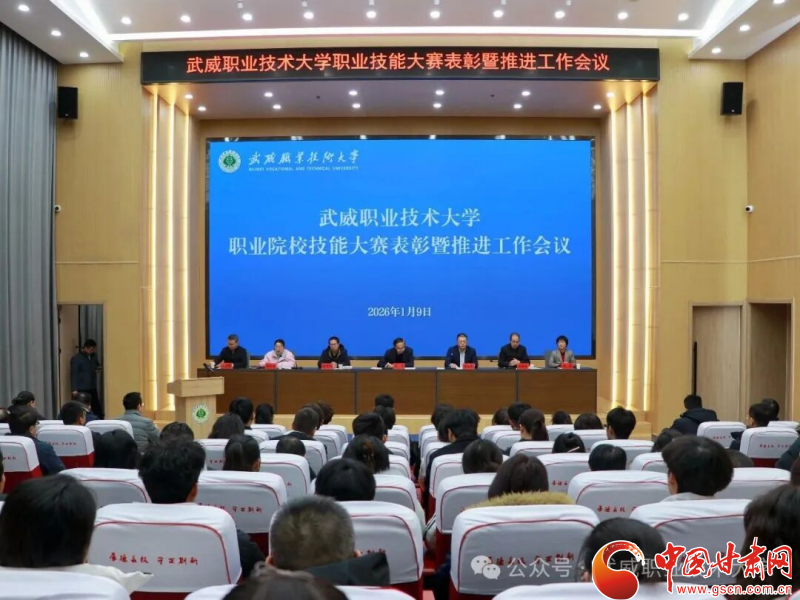 中国甘肃网1月11日讯(西北角·中国甘肃网记者 张振国)1月9日,武威职业技术大学召开职业院校技能大赛表彰 暨推进工作会议。党委书记王宏出席会议并讲话。在家校领导班子成员、各学院(部)及职能部门负责人、获奖师 生代表以及备战2026年大赛的师生代表共同参会。校长李海军主持会议。 会议通报了学校在2023至2025年职业院校技能大赛中的师生获奖情况,系统总结了近年来参赛工作,并对2026年 世界职业院校技能大赛争夺赛的备战任务作出安排部署。优秀获奖师生代表在会上作交流发言。校领导为在职业 院校技能大赛国赛、省赛及教学能力比赛中取得优异成绩的师生代表颁奖。 (武威职业技术大学供图) 会议指出,要将技能大赛全面融入专业建设与人才培养体系,紧密对接区域产业发展需求,统筹规划专业群与竞 赛项目布局,推动大赛与专业建设、课程改革、教材开发协同并进,持续深化学校内涵建设。要坚持以赛促教、 以赛促改,将技能大赛作为服务产业、引领教育教学改革的重要抓手,深化产教融合与校企合作,鼓励更多企业 参与赛事组织和人才培养,实现教育链、人才链与产业链、创新链有机衔接。要大力弘扬工匠精神,引导学生树 立技能成才、技能报国的信念,培养拼搏精 ...