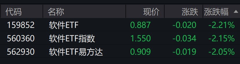 软件概念股走弱,软件ETF跌超2%