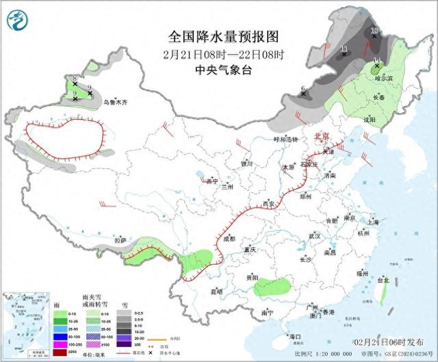 2月21日08时至22日08时,内蒙古中东部、东北地区中西部、新疆伊犁河谷等地部分地区有小到中雪或 雨夹雪,其中,内蒙古东北部和中部、黑龙江西部等地部分地区有大到暴雪(10~18毫米)。新疆伊犁河 谷、西藏南部、四川南部、贵州东南部、云南西北部、广西北部、台湾岛东部等地部分地区有小雨。内 蒙古、黑龙江西部、西藏北部、青海东部、甘肃河西、华北大部、辽东半岛、山东半岛等地部分地区有 4~6级风,渤海、渤海海峡、黄海北部海域将有5~7级风,阵风8级。 中新网2月21日电 据中央气象台网站消息,昨日,新疆、内蒙古、甘肃等地出现大风沙尘天气。预计未 来三天,受强冷空气影响,江淮及其以北大部地区将有大风降温,西北地区、华北、黄淮、江淮等地将 有沙尘天气,局地有沙尘暴或强沙尘暴,新疆北部、内蒙古东部、东北地区将有明显降雪,关注大风降 温、雨雪、沙尘等天气对春运交通、旅游、户外活动、人体健康等的影响。渤海、黄海等海域风力较 大,做好海上交通安全管理。 新疆内蒙古甘肃等地出现大风沙尘天气 昨日8时至今日6时,全国大部降水较少,新疆北部、西藏东部等局地出现小雪或雨夹雪;新疆北部和东 部、内蒙古中西部、甘肃西部、青海东部和南部等地 ...