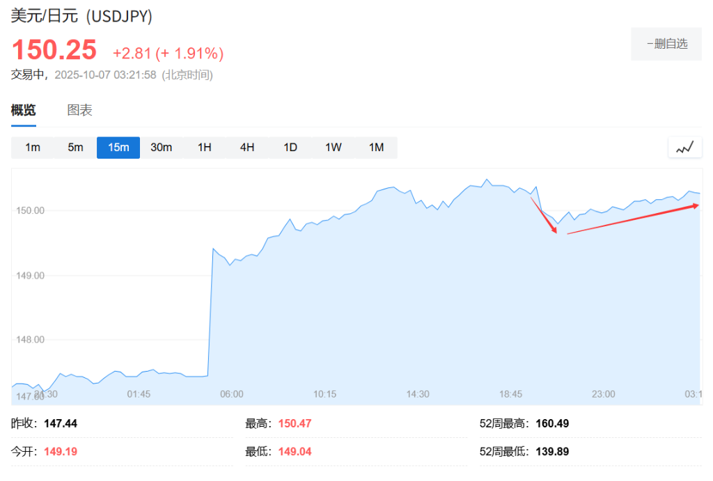 日本央行本月加息可能性大幅降低。 高市早苗的谨慎立场 作为前首相安倍晋三的门生,高市早苗的政策立场深受"安倍经济学"的影响。 10月6日,高市早苗的核心经济顾问本田悦郎(Etsuro Honda)表示,10月加息"可能很困难",建议12月加息时机更佳,届时加息25个基点不成 问题。 交易员对10月30日央行加息的押注大幅下降,从一周前的约68%降至周一的约25%。高市智敏希望日本央行在加息问题上保持谨慎态度,尽管她 尚未提及具体的加息时间表。 华尔街见闻此前提及,高市智敏在自民党总裁选举中获胜后,市场对央行政策预期发生重大转变。日经225指数周一创下历史新高,日元兑美元汇 率跌破150关键关口,反映投资者对更多刺激措施和更缓慢加息步伐的预期。 本田悦郎发出警告,认为日元过度贬值将推高通胀水平,并表示汇率突破150"有点过头"。受此言论影响,日元短暂反弹至149.90附近,但随后美 元兑日元继续走高,日内贬值1.91%。 经济数据与央行内部分歧 尽管市场预期转向,但支持加息的宏观经济背景依然存在。 日本的通胀率已经连续三年多保持在或高于日本央行2%的目标水平,同时,截至今年6月的第二季度,日本经济已实现连续五个 ...