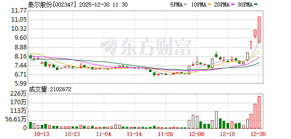 机器人概念早盘表现强势,相关个股泰尔股份(002347)早盘以跌停价位开盘,此后连续拉升并于9时44分触及涨停,在14分钟内上 演"地天板"走势。 机器人概念持续发力 泰尔股份"地天板" 早盘,机器人概念延续前一日的强势表现,相关个股再度掀起涨停潮。截至午间收盘,北交所个股天铭科技收获30%幅度涨停,五洲新 春、泰尔股份、天奇股份等同样涨停。 今日早盘,A股市场整体低开高走,AI应用、机器人等科技题材表现活跃,深证成指相对强势。截至午间休市,上证指数报3961.21点, 跌0.10%;深证成指上涨0.23%,创业板指下跌0.06%。 A股主要股指早盘表现 | 11/25 | | 9.97% | | | | | --- | --- | --- | --- | --- | --- | | | | | | | 资金 | | | | | 更5 | | | | | | | 重4 | | | | | | | 卖3 | | | | | | | 重2 | | | | | | | 卖1 | | | | | | | 买1 | 11.25 | 2.3万 | | | | | 址2 | 11.24 | 1110 | | | | | 买 ...