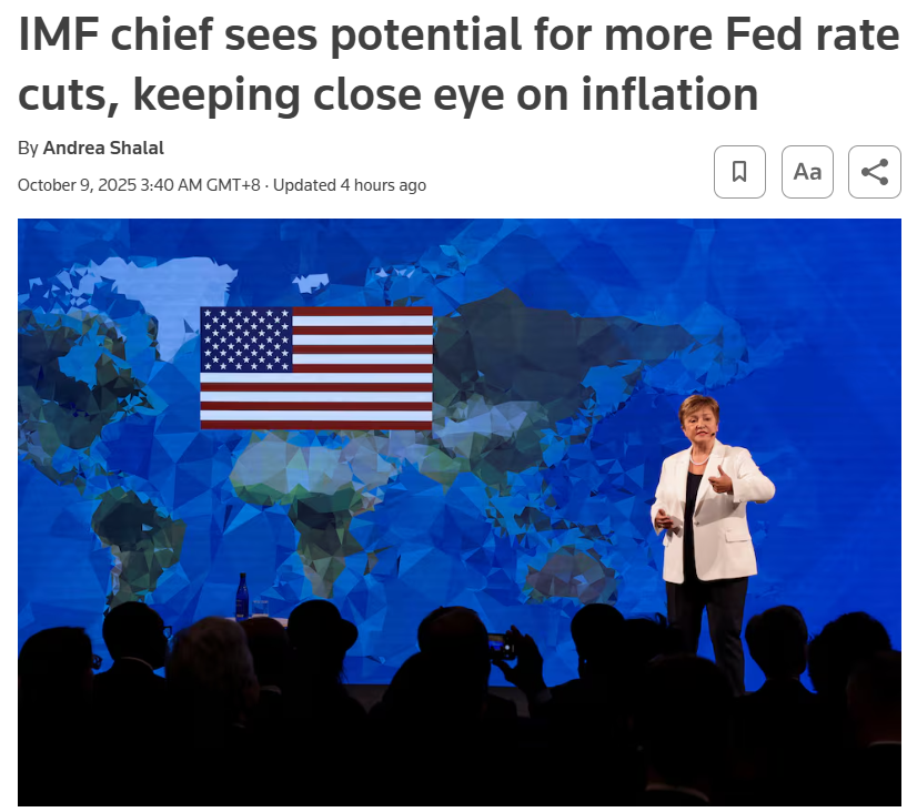 美联储释放进一步降息意愿,IMF总裁评价“美国通胀前景可能加剧”