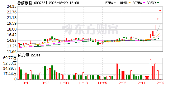 每经AI快讯,12月29日,鲁信创投(600783)(600783.SH)公告称,公司股票于2025年12月26日、29日 连续两个交易日内收盘价格涨幅偏离值累计达到20%,属于股票交易异常波动情况。公司股票价格于12 月23日至29日期间累计上涨54.53%,存在股价短期涨幅较大后续下跌的风险。截至目前,公司参股的 三只股权投资基金合计仅持有蓝箭航天空间科技股份有限公司0.89%股权,股权穿透后对公司财务状况 和经营成果影响较小。 ...