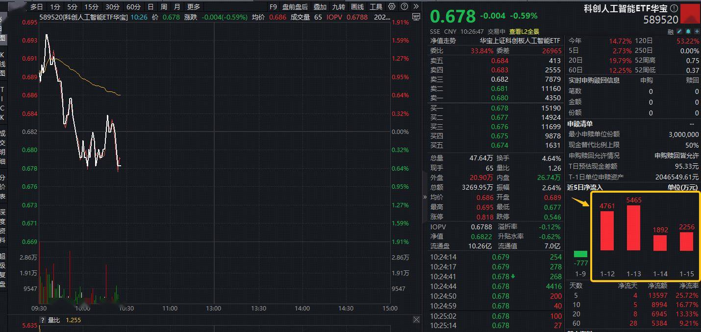 ETF盘中资讯|国产AI登顶全球!智谱+华为联手!资金逢跌抢筹,科创人工智能ETF华宝(589520)近4日狂揽1.4亿元!