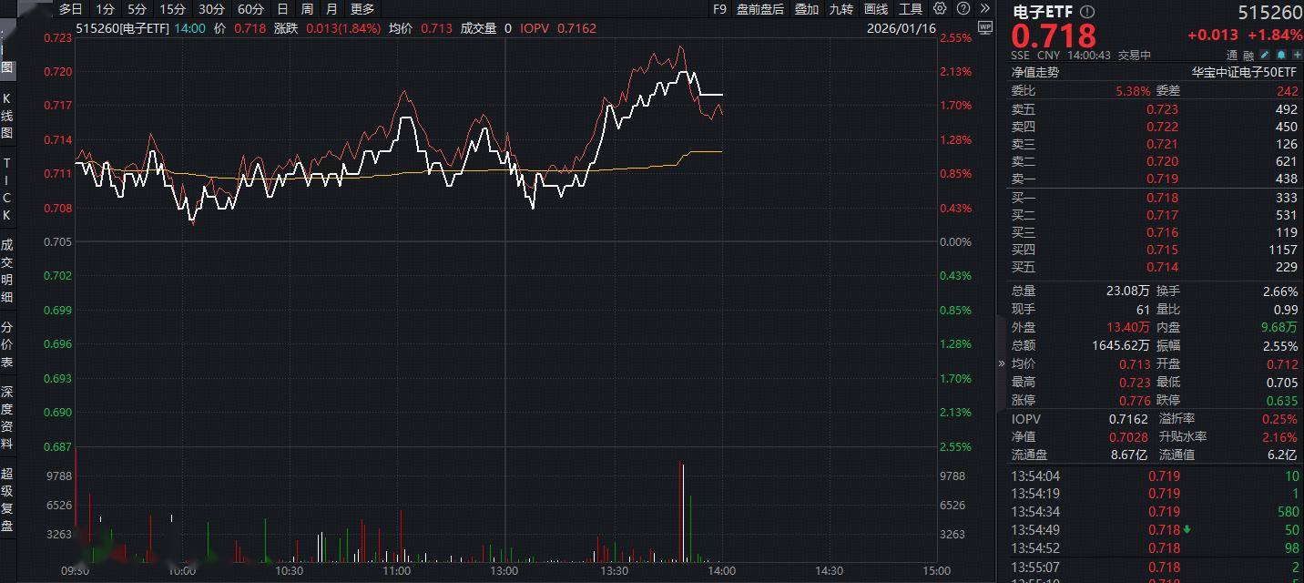 ETF盘中资讯|超300亿主力资金爆买!电子板块领涨两市,长电科技等3股涨停!电子ETF(515260)盘中拉升2%,冲击3连阳