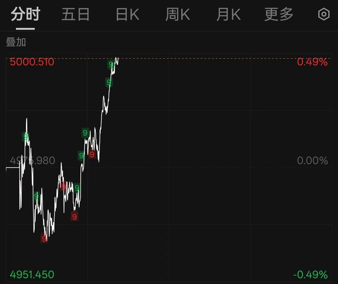 黄金期货重回5000美元