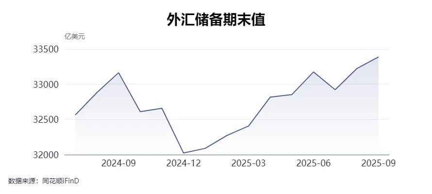 创2015年12月以来最高!9月末外汇储备达33387亿美元!官方黄金储备连续11个月增加