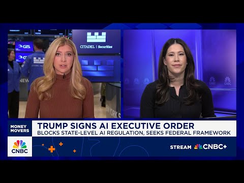 President Trump signing an executive order last night blocking states from making their own artificial intelligence regulations in favor of a national framework. The order aimed at strengthening America's lead in AI as competition with China heats up. Dear Drabosa has more in today's tech check.I would imagine the industry is pretty happy about it. Dearra, >> most of them. I mean this new order reflects something that I do hear a lot behind the scenes from investors and founders and that is that the US is b ...