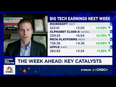Well, for more on next week's big catalyst, let's bring in vital knowledge founder Adam Chrysafouli. Adam, this morning you talked about who won this week, Bulls versus Bears, but next week we have quite a list of catalysts here. So, how do you think this sets us up for next week.Yeah, I think um you know next Wednesday and Thursday in particular are going to be just blockbusters as far as catalyst where you have you know the major tech companies all reporting you have critical fed meeting and then you have ...