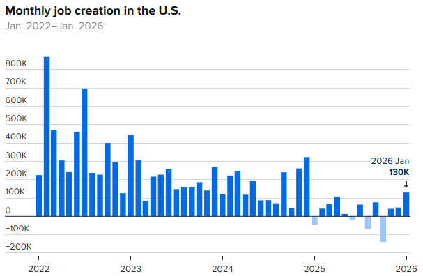 远超预期!美国1月非农新增13万、失业率意外下降 市场降息预期降温