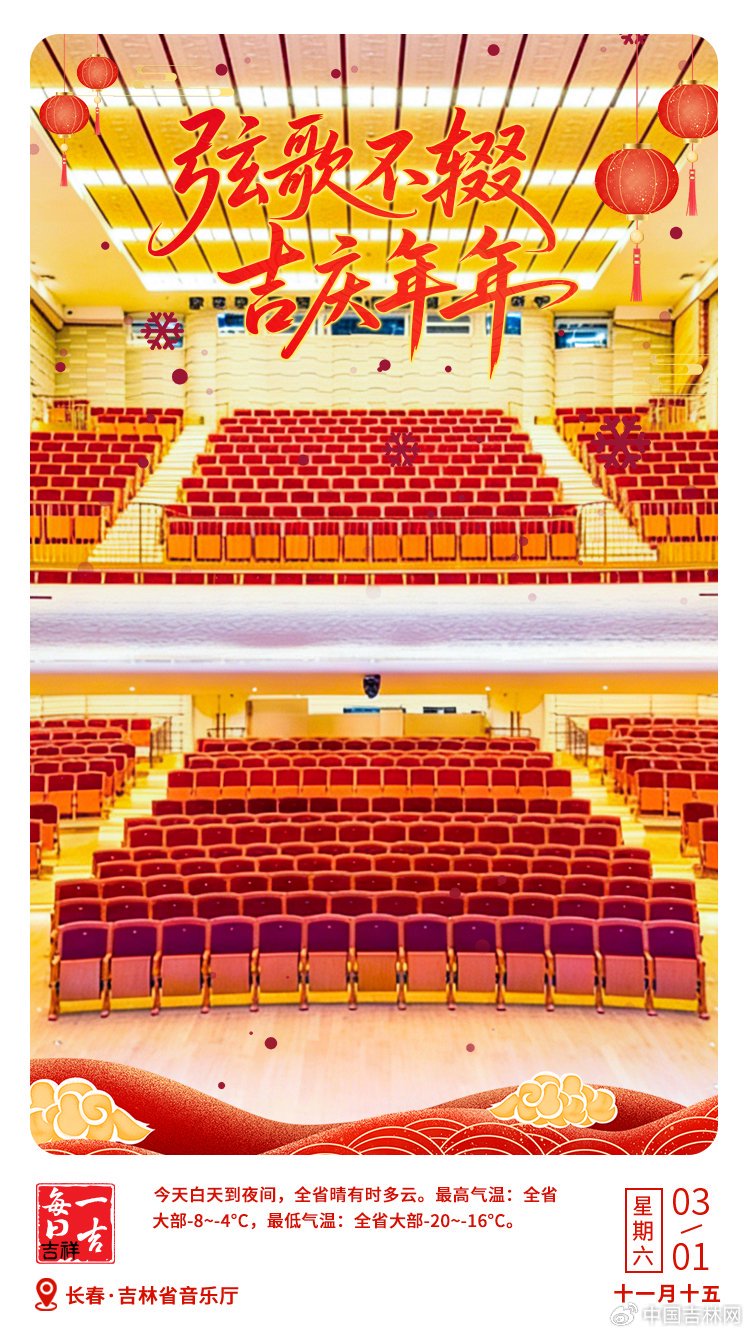 【天气】今天白天,全省晴有时多云。最高气温:东部-4℃左右,其他-8~-5℃,最低气温:全省大部-20 ~-15℃。 【倡议】1月2日,吉林省精神文明建设办公室发布《"'光盘'到底 不负'食'光"倡议书》:从每一餐做起, 按需做餐,按需点餐、合理取食,剩余饭菜主动打包;婚丧嫁娶、商务宴请等场合,倡导简约适度、绿色 健康;家长以身作则,教育孩子爱惜食物。学校加强教育,将勤俭节约融入校园文化。媒体积极宣传,营 造"浪费可耻、节约光荣"的社会氛围。 【免收】1月4日起,长影世纪城日场免收大门票,园区内项目单独付费体验。 【暂停】吉大一院产科发布消息,2026年元旦法定节假日期间1月1日至1月3日休息暂不办理《出生医学证 明》。1月5日(星期一)起恢复办理《出生医学证明》。 【开放】2026年1月1日,吉林京剧出科博物馆正式迁入"大夫第"新址,并正式对外开放。"大夫第"坐落于 世纪广场北侧的喜连成京剧艺术公园内,与响盈大东古戏楼南北呼应。 ★日前,长春市教育局网站发布2025年市级学科骨干教师名单,认定丁颖等1107名教师为长春市2025年市 级学科骨干教师,颁发骨干教师证书。 ★元旦佳节,当千家万户沉浸在辞旧迎新的 ...