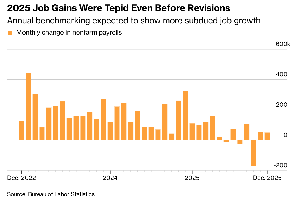 来源丨国际财闻汇 一份信息量高于以往的就业报告预计将揭示美国劳动力市场近年来放缓的程度,甚至可能表明其增长已完全停滞。 除常规月度就业人数和失业率数据外,定于周三发布的1月就业报告还将包含备受关注的年度就业数据修正值。此前初步估计显示,截至2025年3月 的年度就业数据可能出现创纪录的91.1万人的下修,预计此次修正将显著下调招聘速度。 BMO Capital Markets首席美国经济学家Scott Anderson表示:"今年的年度基准修正将比往常更具影响。当前劳动力市场确实处于净就业增长与可 能出现就业流失的刀锋边缘。" 这份由美国劳工统计局编制的报告原定于2月6日发布,但因政府部分停摆而推迟。 "零。一点都没有。完全没有,"沃勒在声明中表示,"这根本不像一个健康的劳动力市场。" 富国银行经济学家在报告中指出:"1月就业报告可能使疲软的劳动力市场格局基本维持不变。" 每年1月就业报告发布时,劳工统计局会将就业数据与更精准但不够及时的季度就业与工资普查数据进行基准校准。该数据基于各州失业保险税记 录,覆盖美国大部分就业岗位。 除2025年3月经调整的就业水平外,劳工统计局还将发布去年全年经修订的月度就业人 ...