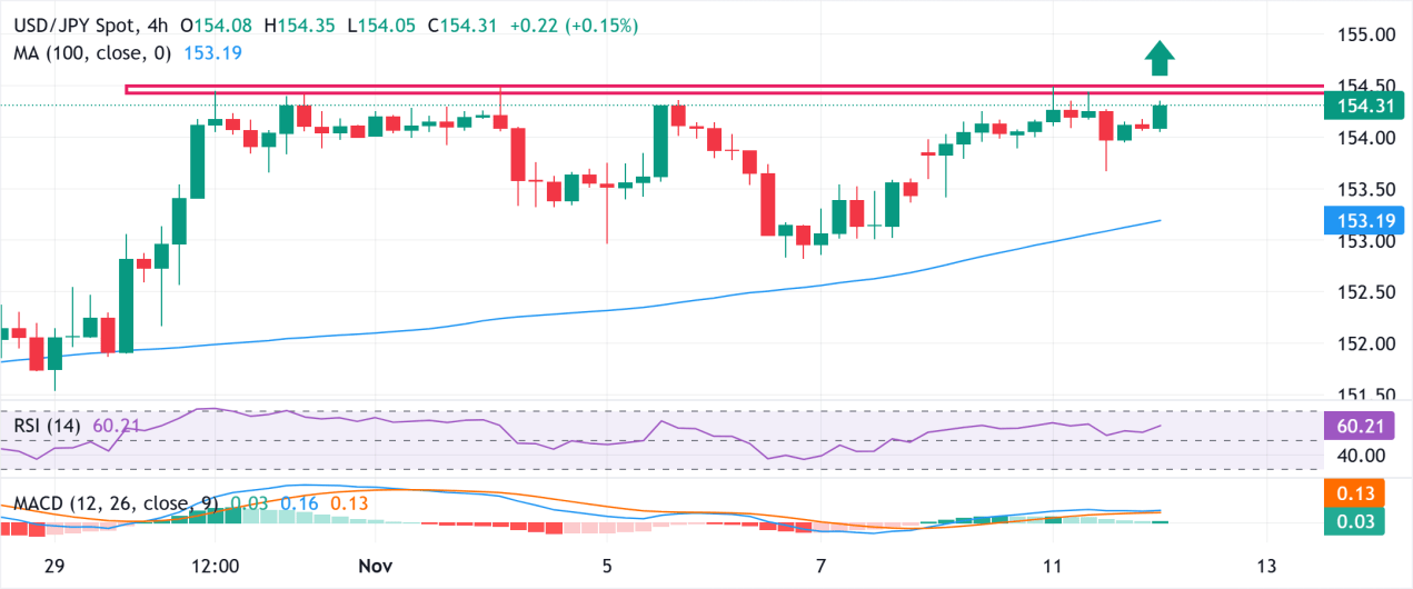 日元在周三亚洲交易时段仍处于承压状态,兑美元汇率维持在2月13日以来的低位附近。 日本央行在政策调整方面表现谨慎,未因政府方面的增长倡议而急于进一步上调利率。与此同时,市场对美国可能避免政府停摆的进展持乐观态度,削弱了 日元的避险属性。 经济学者估计,美国政府此次长期停摆可能导致季度GDP增长率下降约1.5至2.0个百分点。与此同时,市场对美联储维持宽松立场的预期增强,部分投资者 已开始消化12月再次降息的可能性,美元因此持续承压。 不过,日本央行10月会议意见摘要中也存在不同声音,有委员认为再次加息的时机正在接近。市场对日本财务省可能介入汇市的警惕仍未消散,这为美元/ 日元进一步上行带来一定阻力。 今日美国方面暂无重要经济数据公布,市场关注多位美联储官员的讲话,以寻找未来利率路径的线索。这些表态或将影响美元走势,并结合整体市场情绪, 为美元/日元提供短期方向。 在技术面上,美元/日元仍处于强势格局。若汇价能有效突破154.45至154.50的阻力区,短期内可能进一步上探155.00的心理关口,随后目标或延伸至155.60 至155.65区域,甚至接近156.00水平。反之,若价格回落至154.00以下,市场 ...