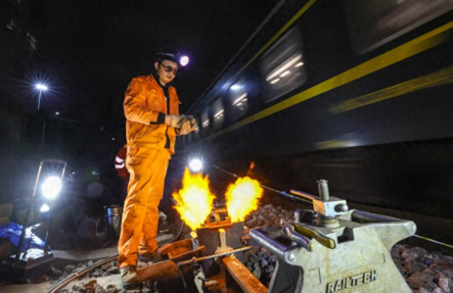 Core Viewpoint - The article highlights the importance of railway maintenance, specifically the replacement of damaged steel tracks on the Hukun Railway, to ensure safe operations during the Spring Festival travel period. Group 1: Railway Maintenance Operations - The replacement of damaged steel tracks was conducted by 25 staff members during a 120-minute maintenance window to enhance equipment quality and ensure safety during peak travel times [1][5]. - The Hukun Railway serves as a major transportation artery connecting Shanghai and Kunming, facilitating economic and personnel exchanges along its route [1]. Group 2: Technical Execution of Track Replacement - The track replacement process involved multiple teams, including a welding group and a track adjustment group, to ensure efficient and safe operations under low light conditions [5][7]. - The welding process, described as a "bone surgery" for the tracks, required precise adjustments and high-temperature welding techniques to ensure the integrity of the rail joints [7][9]. Group 3: Safety and Quality Assurance - Safety measures included equipping workers with headlamps and additional lighting to ensure visibility during night operations, as well as thorough pre-operation checks to confirm the readiness of all teams [5][9]. - Post-operation inspections were emphasized to ensure that the track alignment and gauge met safety standards, allowing for smooth train operations [9].