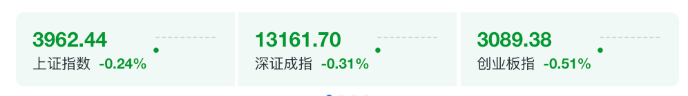 2025.11. 18 本文字数:491,阅读时长大约1分钟 作者 | 一财 阿驴 沪指低开0.24%,深成指低开0.31%,创业板指低开0.51%。 | 代码 | 名称 | 两日图 | 现价 | 涨跌 | 涨跌幅 | | --- | --- | --- | --- | --- | --- | | 000001 | 上证指数 | Varia | 3962.44 c | -9.59 | -0.24% | | 399001 | 深证成指 | Whis | 13161.70 c | -40.30 | -0.31% | | 399006 | 创业板指 | WW | 3089.38 c | -15.82 | -0.51% | 盘面上,厨卫电器、能源金属、房地产、盐湖提锂板块涨幅居前,煤炭、贵金属、有机硅概念走低。 09:21 港股开盘丨恒生指数低开0.8% 恒生指数低开0.8%,恒生科技指数跌1.25%。新能源车概念股走低,小鹏汽车跌逾7%;创新药概念 股回调。能源储存、机器人板块走强。 | HSTECH | 恒生科技 | Vival | 5684.81 | -72.07 | -1.25% | | --- | --- ...
