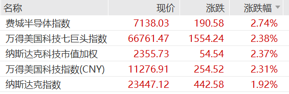 Market Overview - US stock indices opened higher, with the Nasdaq Composite Index rising approximately 2% and the Philadelphia Semiconductor Index increasing over 2.7% [1] - Major tech stocks showed strong performance, with Micron Technology up over 7% and Nvidia, TSMC rising over 3% [3] Semiconductor Sector - The Philadelphia Semiconductor Index reached 7138.03, up 190.58 points, reflecting a 2.74% increase [2] - Notable stock movements included Micron Technology at 254.63 (+7.02%), AMD at 247.21 (+5.85%), and TSMC at 295.51 (+3.14%) [3] Chinese Stocks - The Nasdaq China Golden Dragon Index rose over 2.2%, with significant gains in stocks such as Canadian Solar (+15.52%) and Xpeng Motors (+13.12%) [4][5] European Market - European stock markets experienced broad gains, with Italy's MIB Index up over 2% and Germany's DAX Index increasing over 1% [6] Gold and Commodities - Spot gold and NYMEX gold prices touched $4100 per ounce, marking a 2.1% increase for spot gold [6] - Predictions for gold prices by the end of 2025 range from $4200 to $4600 per ounce, with varying estimates for 2026 [8] Cryptocurrency Market - The cryptocurrency market rebounded, with Bitcoin reaching $106,000 and Ethereum at $3,579.72, reflecting increases of 2.17% and 1.46% respectively [9] - The total liquidation in the crypto market reached approximately $295 million, with nearly 120,000 traders liquidated [9]