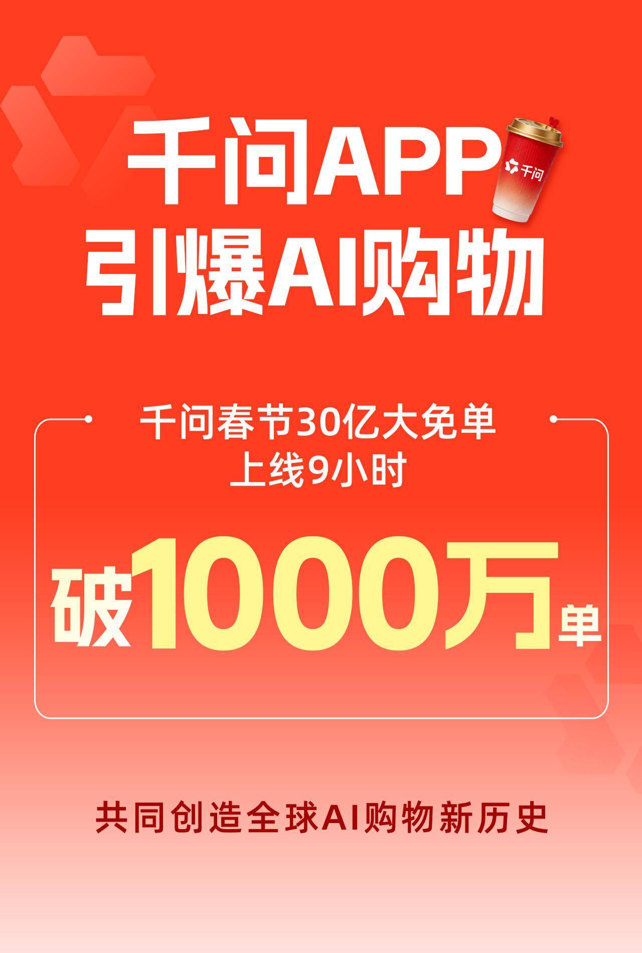 千问AI购物订单,9小时破1000万!