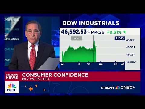 Speaking of retail, consumer confidence data just crossing now. Let's get to Rick Santelli on that. Hey, Rick.>> Yes, these are November numbers on the headline. We're expecting a number right around 93. Big miss here.88.7%, the weakest since April, Liberation Month. And if we look in the rearview mirror, there is something. We do see an upgrade of last month from 946 to 95.5% on the present situation.126.9% another miss although a positive revision 129 to 131 126.9% the weakest since March of 21 and on the ...