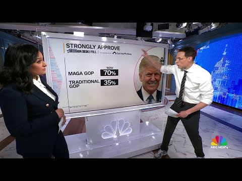 Welcome back. NBC News chief data analyst Steve Cornaki is here to break down the results of our latest NBC News decision desk poll. What do you got, Steve.>> Yeah, Kristen. So, towards the end of 2025, we know that politically a tough ending of the year for Republicans and for President Trump. And certainly this NBC News decision desk poll showing the same thing, a 42% approval rating for Donald Trump.Now, we know his approval rating has existed in a pretty narrow range the entire time both terms he's been ...