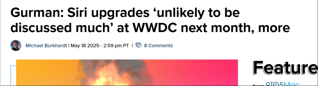 古尔曼: 生成式AI趋势令苹果措手不及,WWDC 不会讨论太多 Siri 升级话题