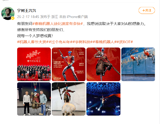 宇树王兴兴:春晚机器人进化速度有多快?我想说这取决于大家对AI的想象力