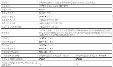 | 品など | 平安中区余指自由暖合波交易型正放送指数正带投资基金联投混合。 | | | --- | --- | --- | | 聚合同样: | 出资中国交通时时的资产业优惠 | | | 基金制代码 | 024887 | | | 最全动作方式 | 如此到开放式 | | | 张会台得重装印 | 2025年8月21日 | | | 张会智理人名称: | 中空流会管理有限公司 | | | 法会托管人名称 | 中国工商银行设计有限公司 | | | 基金直是配民航客称 | 平安装全管理有限公司 | | | 公告依据 | 《中华人民共和国正常投资基金沙及其配资生模《学校中语全指出由贸易资发系到开 放式指数证券投资高金联模基金高会合同》,《平安申还全指后由提金流交易空开放式 指数证券投资基金棋提高全招商收到书》等 | | | 申购就给日 | 2025 8:11 11 20 11 | | | 种换时人配给日 | 2025 年11月 20日 | | | 成熟花特日 | 2025 8:11 / 20 日 | | | 种类和出配给日 | 2025 /6 11 / 20 H | | | 定常见照投资配站日 | 2025 8:11 11 ...
